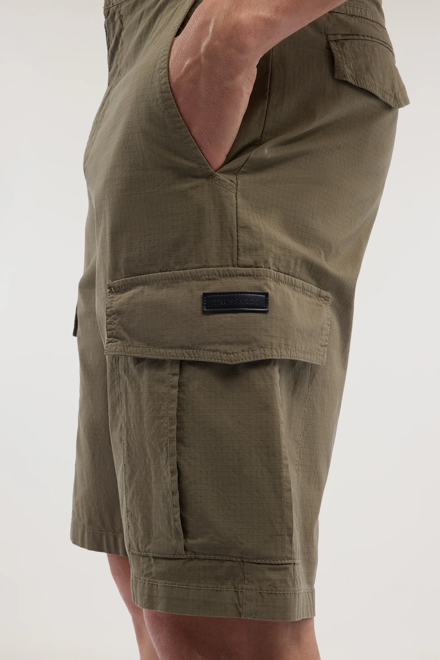 Inspired by military technology, the cargo bermuda shorts in ripstop nylon combine resistance and lightness. The fabric designed to withstand tears ensures high performance over time, while the applied side pockets offer practical functionality. The relaxed fit and essential design make them perfect for a casual-sporty look, ideal to pair with t-shirts and trainers for leisure or with polo shirts for a more structured outfit.